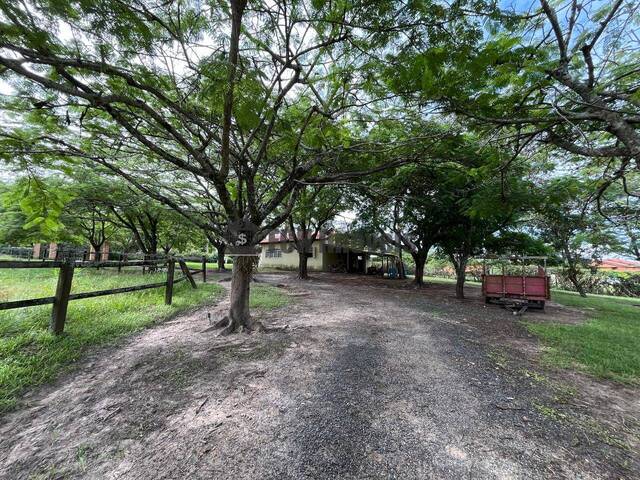 Com portão automático, poço artesiano, caixa d'água metálica, quintal gramado, diversos pés de flamboyants.