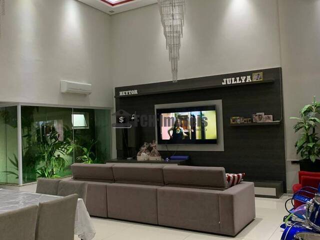 Casa de alto padrão em condomínio fechado Novíssima, semi-mobiliada Com 3 quartos, sendo 2 suítes, sala ampla, cozinha moderna, área gourmet com churrasqueira e piscina, móveis planejados na cozinha e na área gourmet, ar condicionado na sala e na suíte principal.